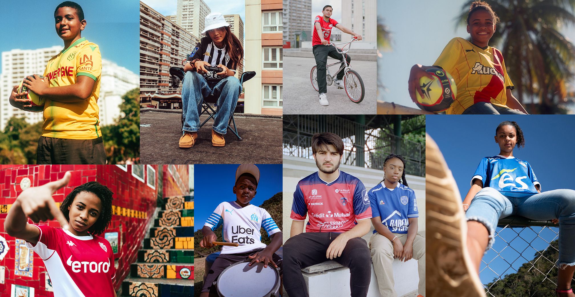 On the occasion of the 2021/2022 season kick-off, Ligue 1 Uber Eats brought together some of the most promising young artistic talents from France and Brazil in a unique campaign to showcase the new jerseys of the league’s 20 clubs. We produced two photo shoots in iconic locations in Rio de Janeiro (Brazil) and Paris, highlighting the new kits of all 20 Ligue 1 Uber Eats clubs. In addition, we collaborated with artist Paulo Accioly to create a large-scale mural in Santana do Deserto, featuring all the jerseys of the championship.